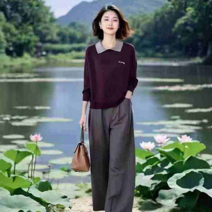 时尚简约套装2026新款撞色翻领POLO衫上衣时尚洋气长袖长裤两件套,3个款多...
