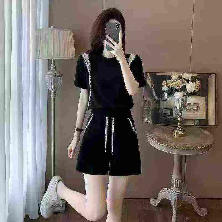 清14.8分货➕12025夏季新款高级感时尚休闲运动套装女设计感短袖短裤两件套...