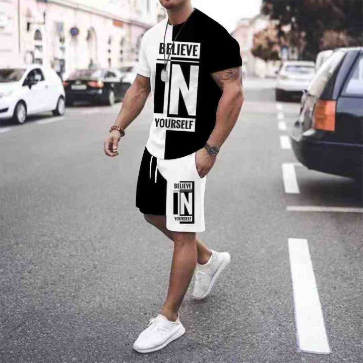 350套男女同款套装T恤短裤夏季圆领新款潮牌休闲运动情侣套装,独立包装,码...