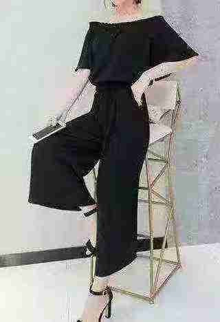 一字肩阔腿裤套装132套8.8,褶皱收腰,裤子有口袋裤子松紧腰,码数1-3(S-L...
