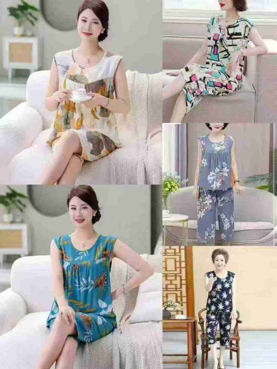 全清价5.9元妈妈夏装套装冰丝亲肤凉快舒服可外穿中老年人女款上衣五分裤两...