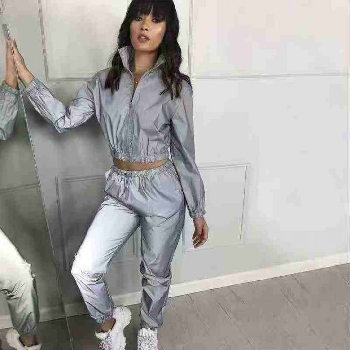 9.9清239套欧美女装套装2025秋季新款两件套亚马逊街头潮人新款反光外套长裤...