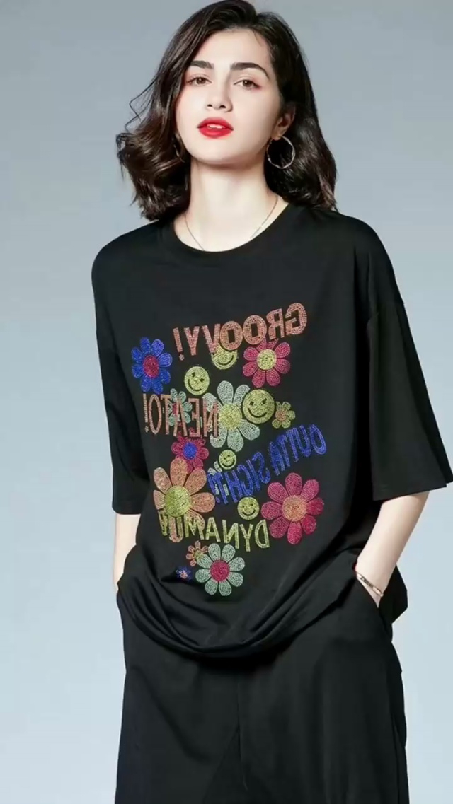 11.8清广州档口回收4000件高品质重磅纯棉甜辣靓妹钉珠短袖T恤,均码80-130...