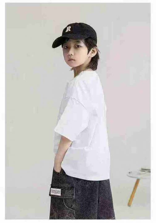 ️7576件\'夏季新款中大童韩版纯色凉感半袖体恤儿童上衣,20件一包装,黑白...
