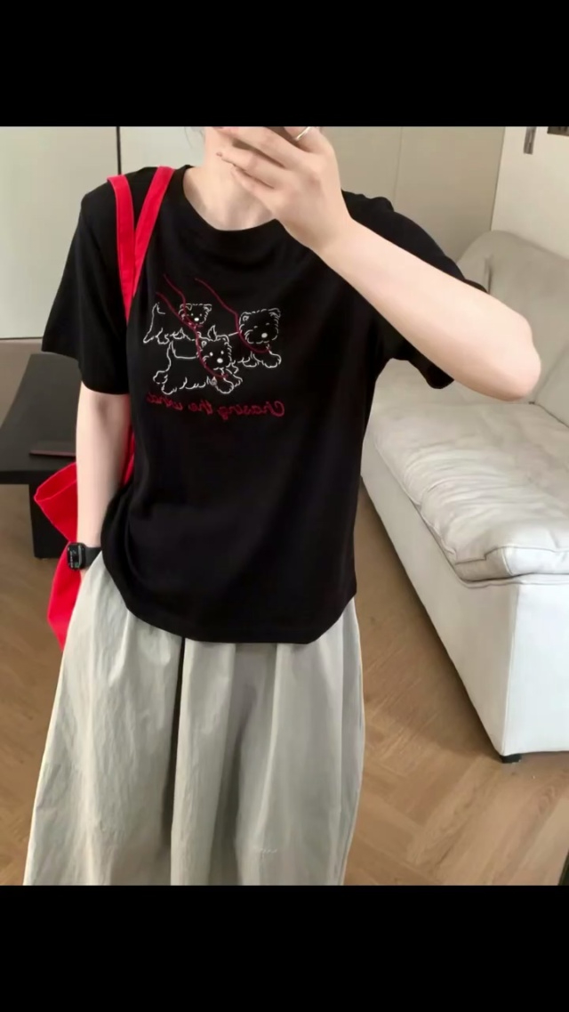 夏季新款气质宽松百搭冰丝针织短袖T桖,独立包装,均码面料柔软舒适弹力大...