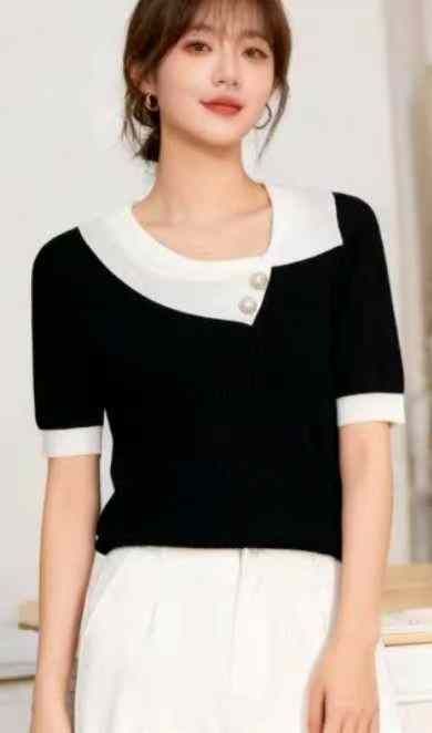 夏季新款宽松百搭设计款小心机短袖针织T桖,独立包装,均码面料软糯舒适弹...