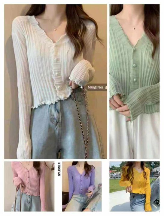 2025新款韩版百搭木耳边短款长袖针织薄款上衣外套,独立包装,五个颜色,8...