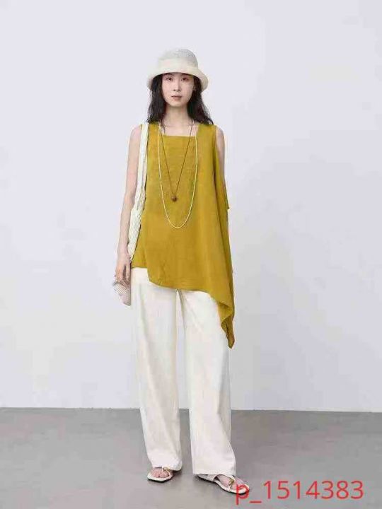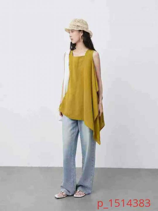 上新全清:10.8一件小众姜黄色亚麻不规则荷叶边无袖上衣,[爱心]65件左右,...