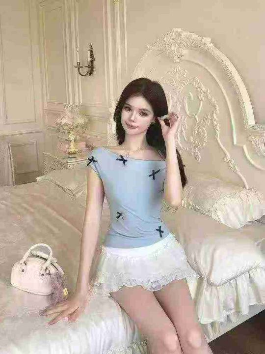 法式别致一字肩气质蝴蝶结收腰显瘦针织短袖,品质很好,独立包装,均码,14...