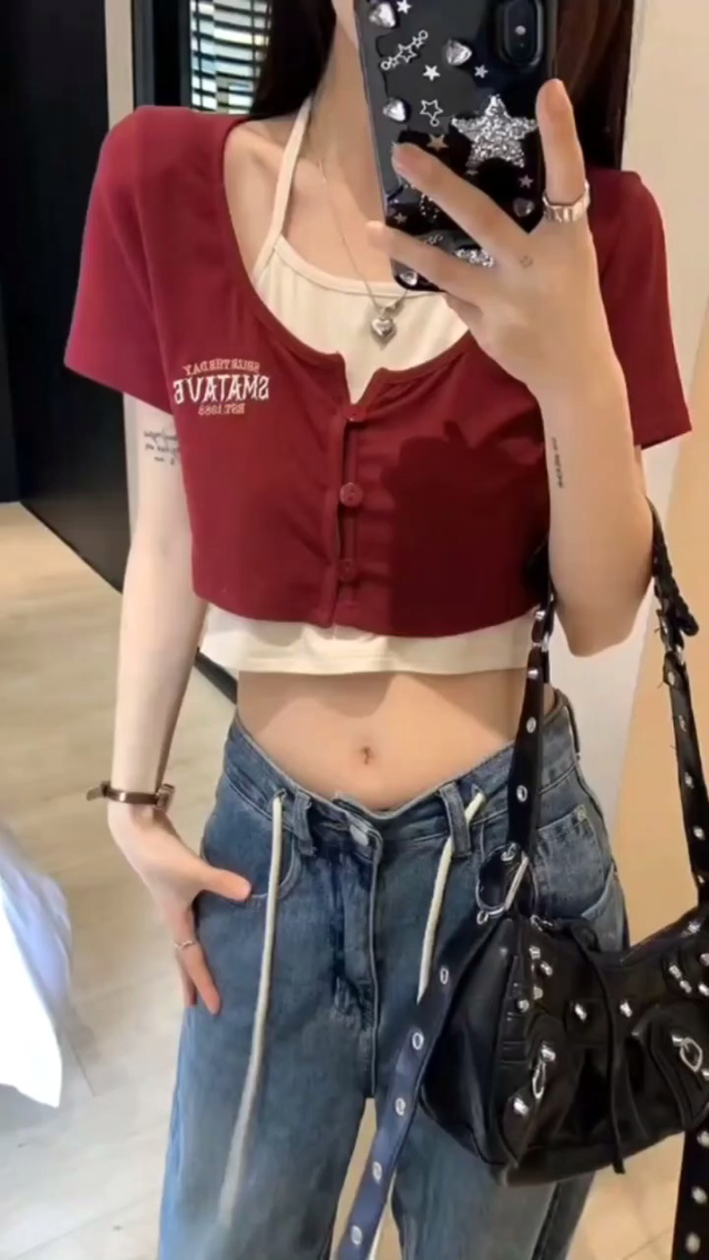 美式polo领短袖T恤女夏季新款设计复古辣妹修身显瘦短款上衣ins潮,s一3XL码...