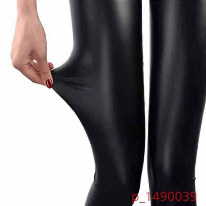 2025秋时尚酷感光泽皮感松紧腰修身休闲品牌折扣打底裤,高弹力,数量350件...