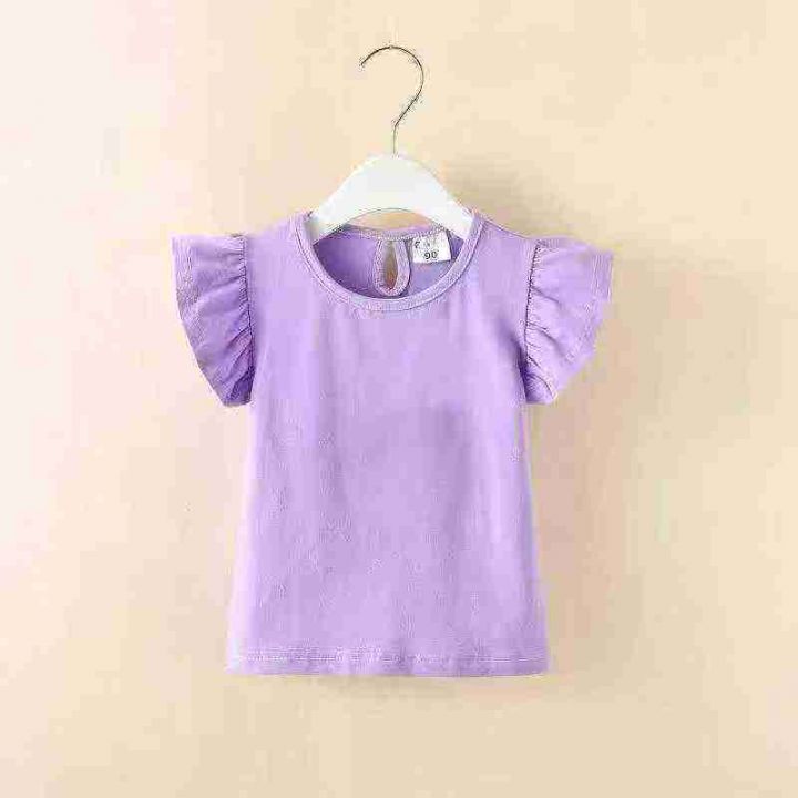 全清4.9韩版夏季儿童装短袖T恤2025女童上衣宝宝无袖甜美纯棉飞飞袖洋气,10...
