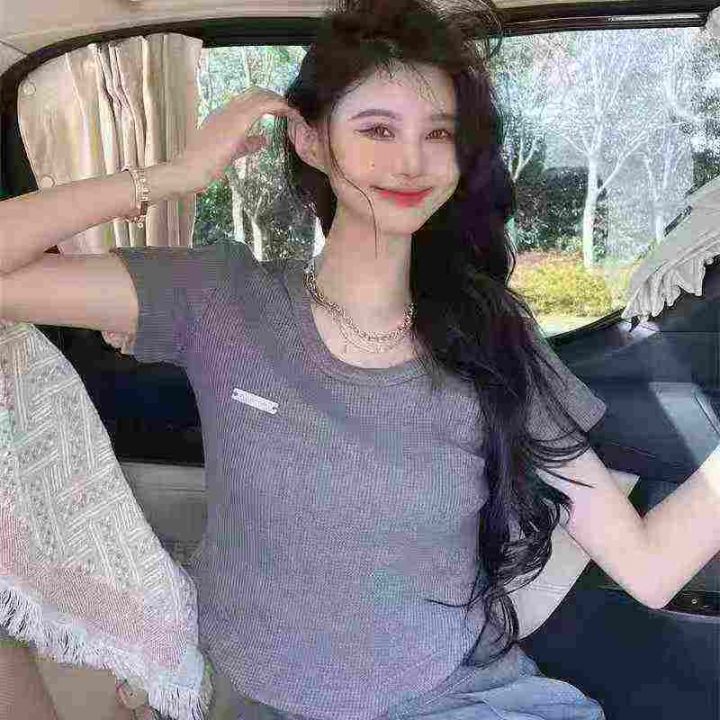 全清6.5不规则T恤女ins潮薄款短袖辣妹修身显瘦短款上衣夏季2025新款,150件...