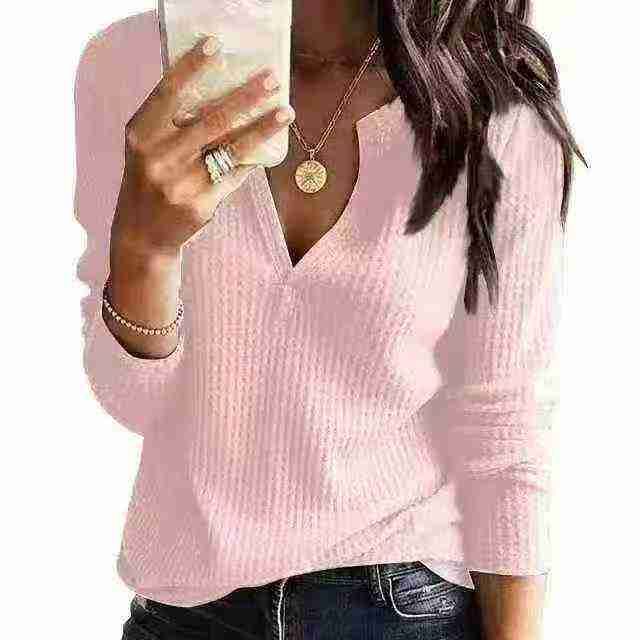 全清4.9蝶宝嘻 v领粉红色上衣修身显瘦秋冬百搭长袖打底针织衫,100件,码数...