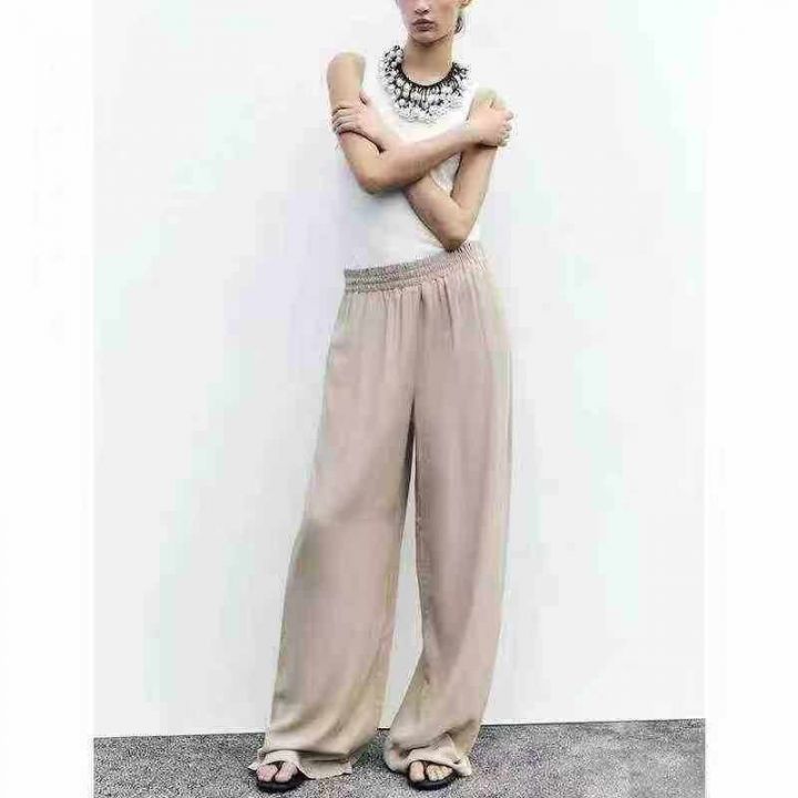 2025夏季时尚爆款女装弹力腰身高腰新款休闲长裤宽松阔腿裤子均码,730条,...