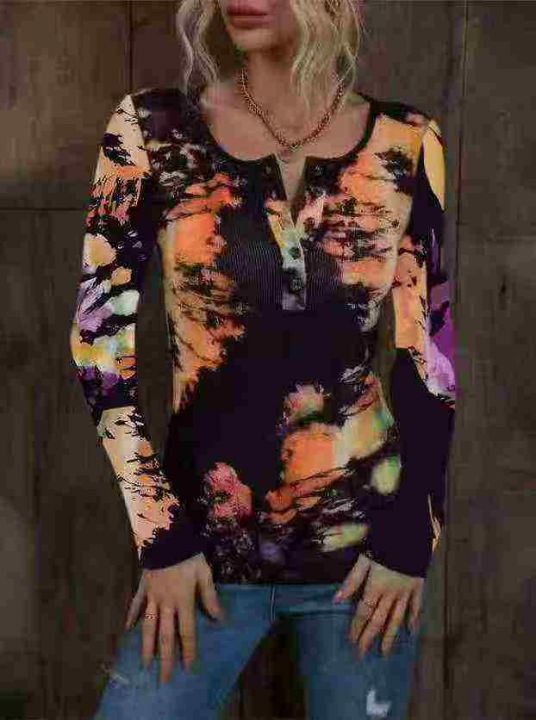 2.9清工厂回收443件外贸女士长袖扎染花上衣,码数S-2XL。版型质量很好,弹...
