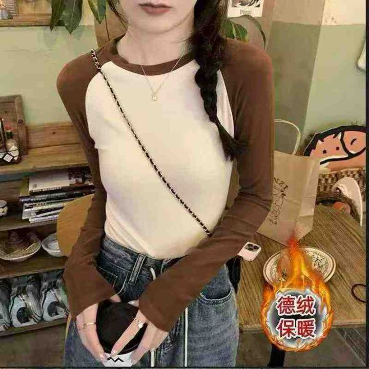 德绒圆领长袖秋冬季新款撞色修身百搭打底保暖上衣,独立包装,整款四色,面...