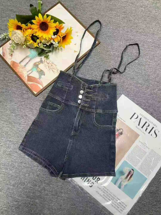 夏季新款靓妹女装弹力修身显瘦牛仔背带短裤,独立包装,可穿80--100斤左右...
