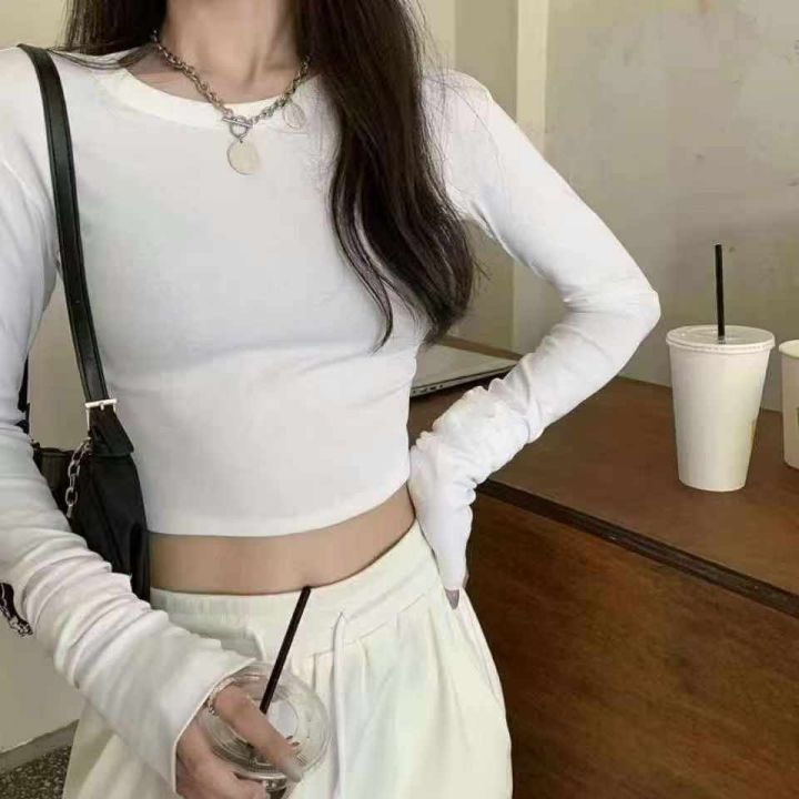 减龄气质休闲长袖打底衫韩版短款露脐T恤女秋装修身显瘦上衣百搭,没独立包...