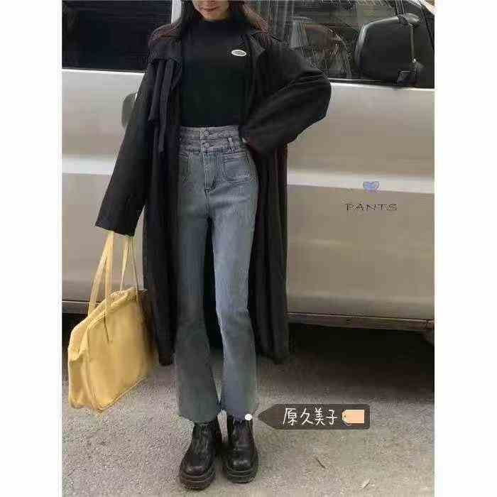 早秋季新品高弹力女装洗水棉毛边微喇叭牛仔裤,独立包装带腰卡,码数S-2XL...