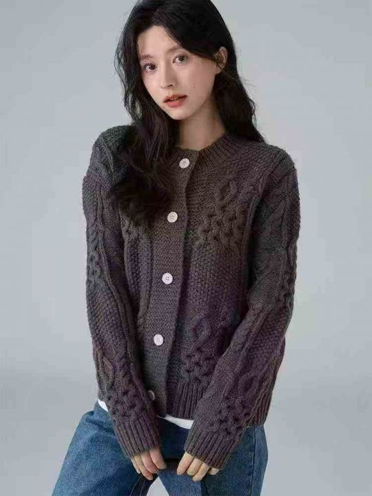 全清13.8,画风drawwind绞花圆领针织开衫外套女2025新款秋季针织衫...