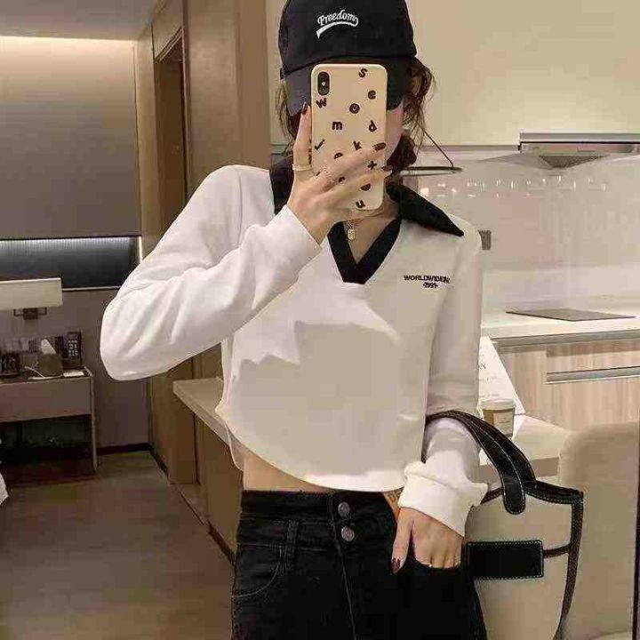 6180件\'美式甜辣妹韩版假两件长袖t恤女春夏修身打底衫撞色纯欲显瘦上衣,...