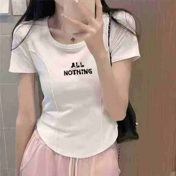 冰丝螺纹短袖t恤女夏修身显瘦甜辣小上衣设计感小众2025新款,整款4色,弹力...