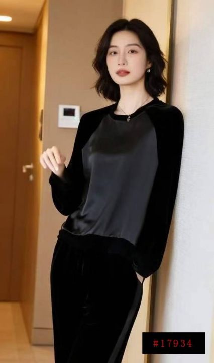 春秋新款轻熟女装宽松AB面针织拼金丝绒长袖上衣,独立包装,均码面料软糯舒...