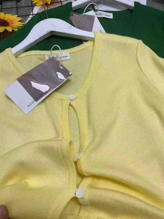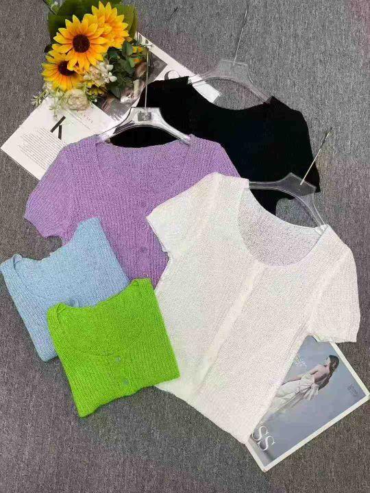 夏季新款法式气质弹力修身显瘦短袖针织开衫,独立包装带吊牌带防伪扣,均码...