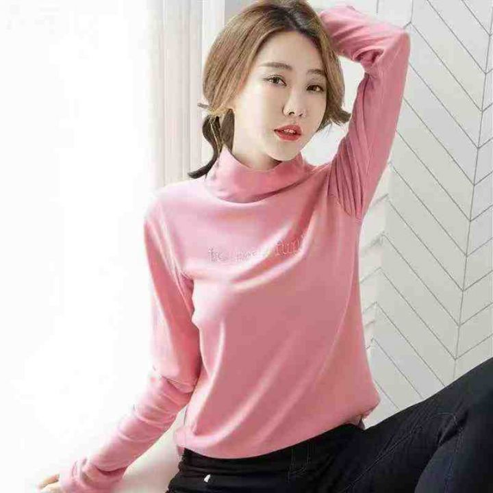 秋冬新款高品质网红弹力修身显瘦卷边半高领温柔风包芯纱打底外穿套头毛衣,...