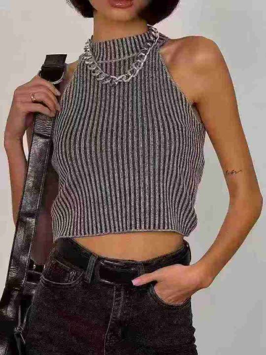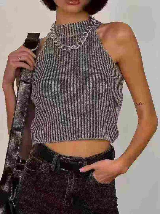 秋季新品美拉德色系宽松胖mm设计感长袖针织衫+冰丝吊带背心两件套,独立包...