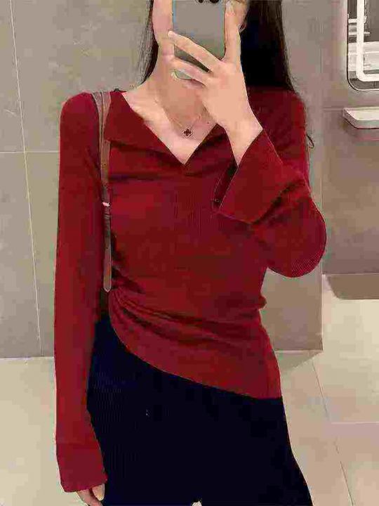 V领打底衫女春秋季新款修身高级感紧身针织上衣,独立包装,均码,1610件,...