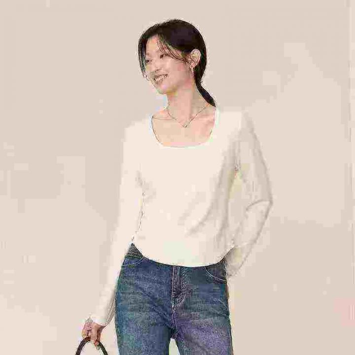 2025年春秋新款时尚百搭圆领长袖针织衫宽松显瘦打底上衣,独立包装,均码,...