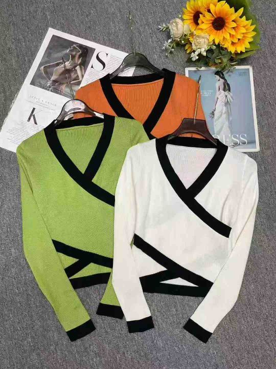 v领针织外穿内搭设计感小众长袖针织,独立包装,六个颜色,均码,2300件左...