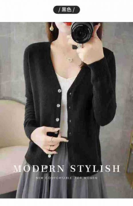 早秋新款百搭V领针织衫开衫外套短款毛衣外套上衣纯色外搭,152件,包芯纱面...