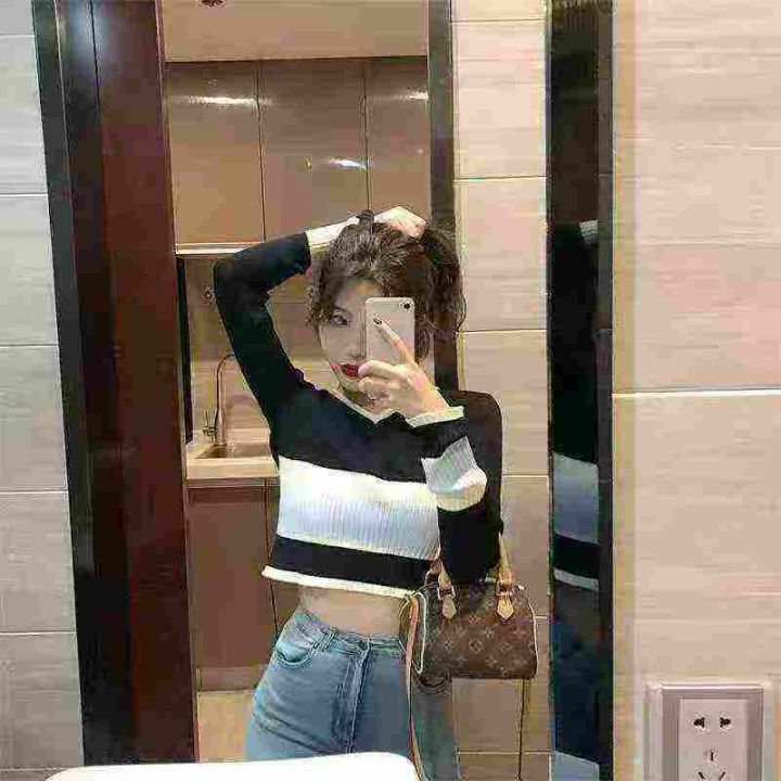 高腰内搭打底修身早秋V领针织衫长袖上衣,独立包装,均码,550件,清6.8,...