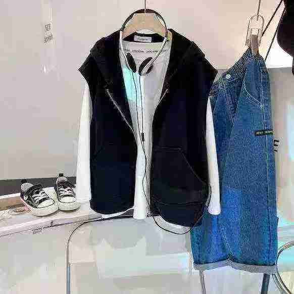 ️412件\'新款秋季潮流童装ins流行男纯色薄款拉链休闲慵懒时尚马甲帅气,码...