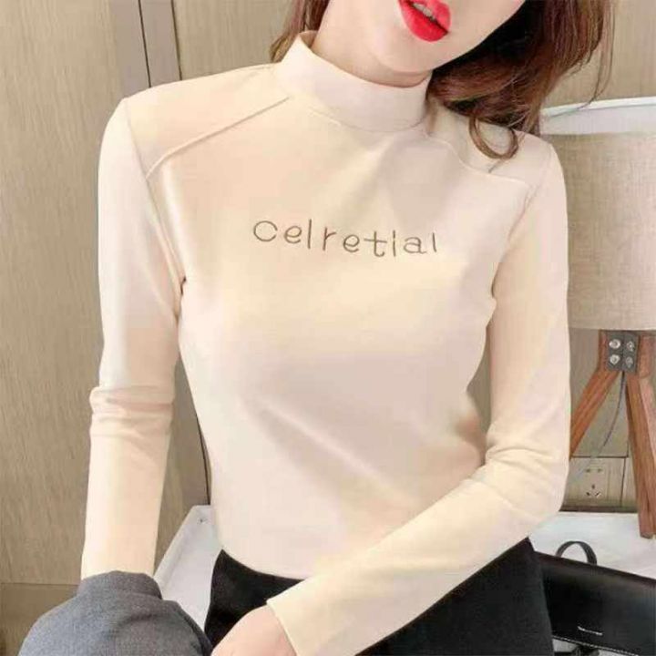包芯纱气质洋气修身内搭高领半高领毛衣潮爱心刺绣针织打底衫,独立包装,高...