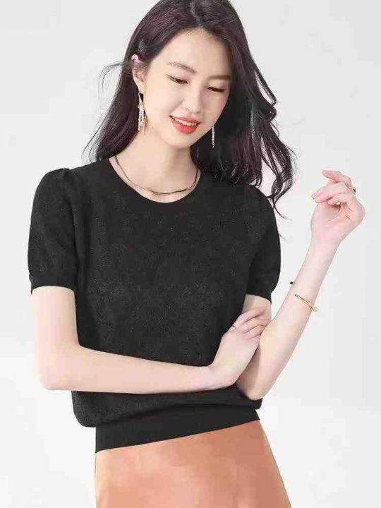 夏季新款宽松百搭设计款高弹力冰丝针织短袖,独立包装,均码面料软糯舒适弹...