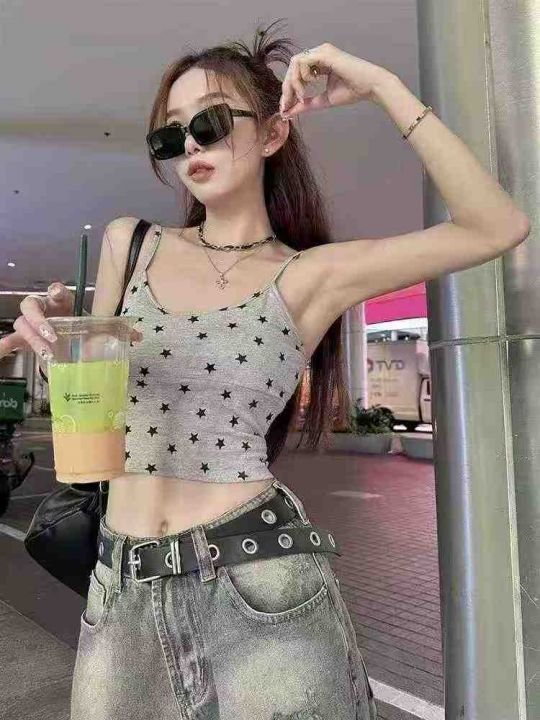 全清价3.9美式辣妹星星印花吊带背心短款内搭修身显瘦上衣,独立包装,码数1...