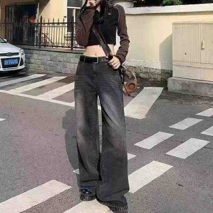 秋冬新款大码女装洗水棉网红爆款胖MM直筒阔腿牛仔长裤,独立包装,码数S--2...