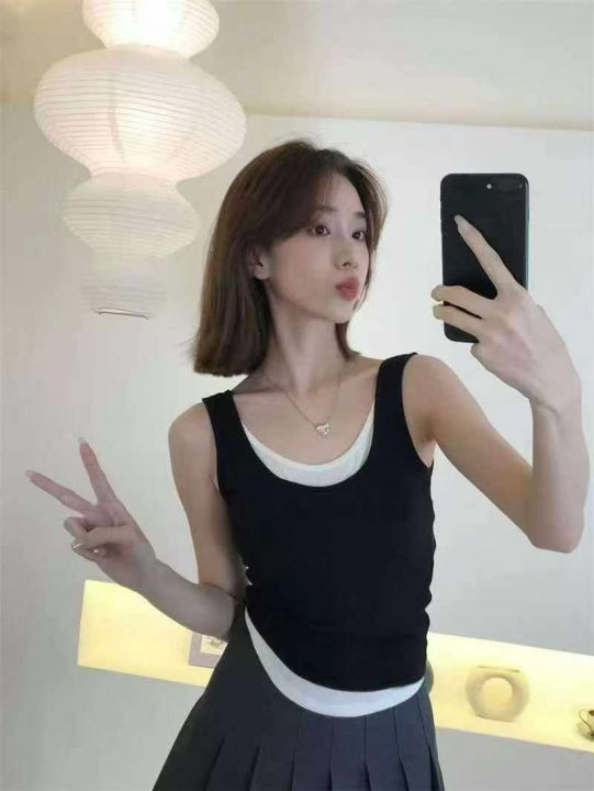 港风假两件背心设计感小众辣妹打底内搭吊带外穿潮流无袖上衣 独立包装 1-4...