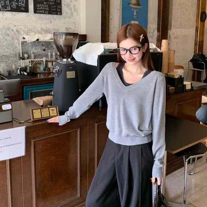 秋冬新款小众设计感假两件长袖内搭外穿针织套头毛衣,独立包装,均码面料柔...