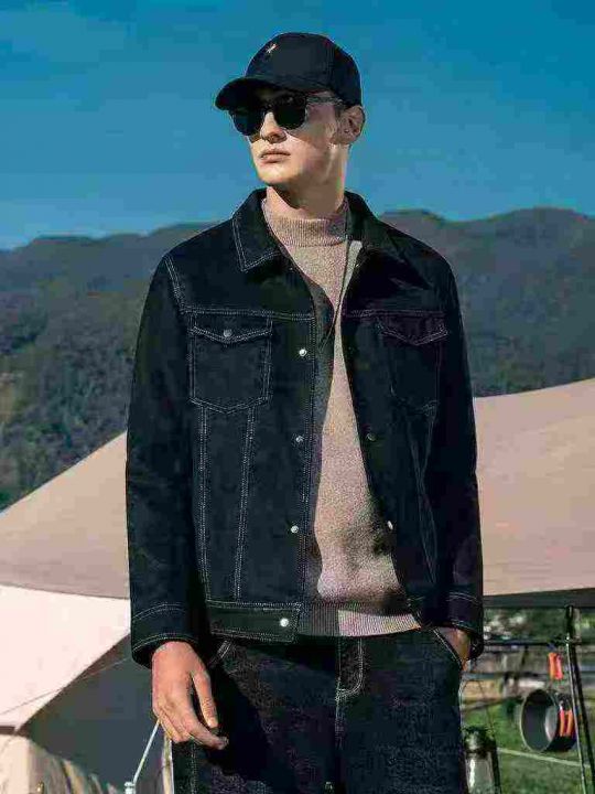 全清价24.8元男士新款仿麂皮绒夹克潮流帅气休闲翻领工装外套上衣,独立包装...