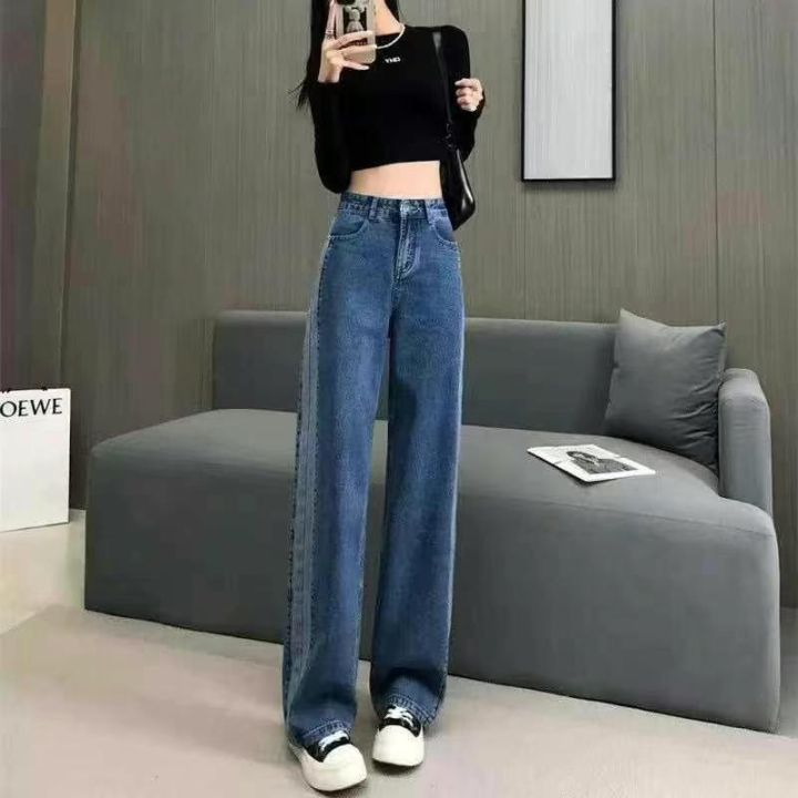 春秋新款女装洗水棉复古直筒阔腿牛仔裤,独立包装带腰卡,码数M-XL码,100...