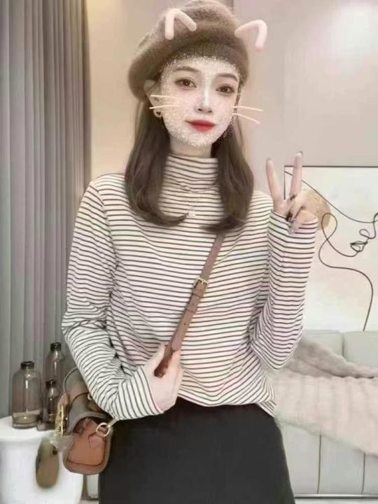 2.9清工厂回收930件纯棉百搭经典条纹高领打底衫,码数均码,90-130斤可穿,...