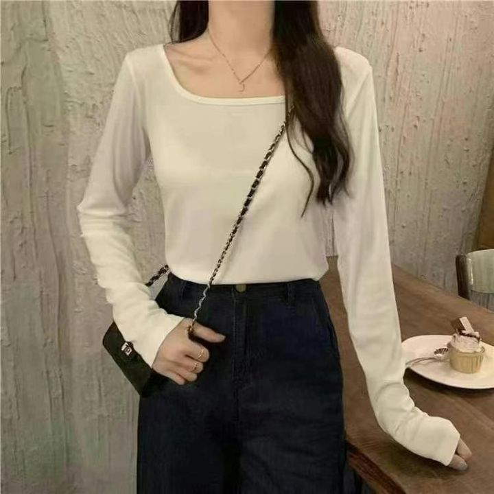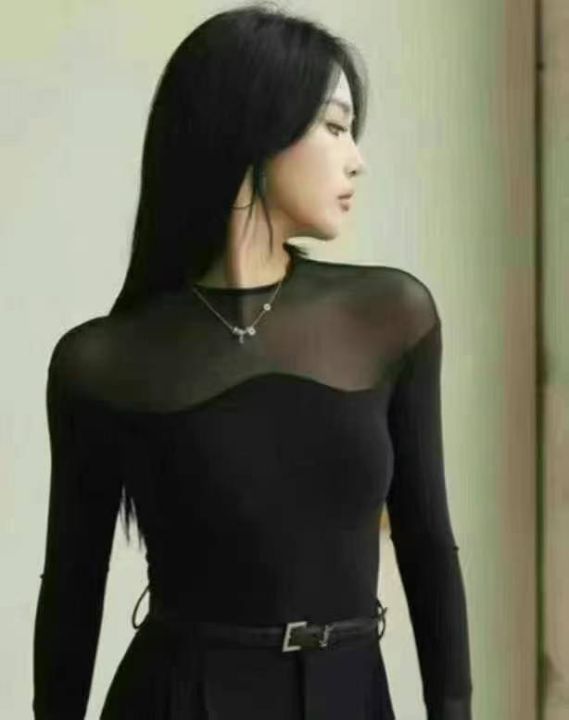 5.9清电商仓回收174件冰丝辣妹纯欲半开领蕾丝花边长袖修身上衣,码数s-xl,...