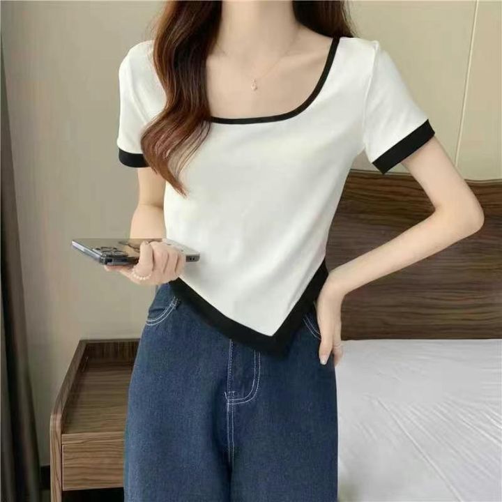 【876 款】方领冰丝短款长袖t恤女外穿秋季螺纹棉一体上衣修身打底衫 208 件...