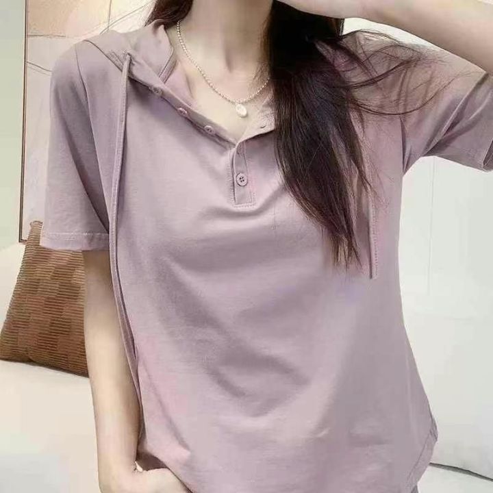 400件左右韩版休闲连帽百搭短袖T恤小衫!纯棉!有弹力!面料特别亲肤柔软!...
