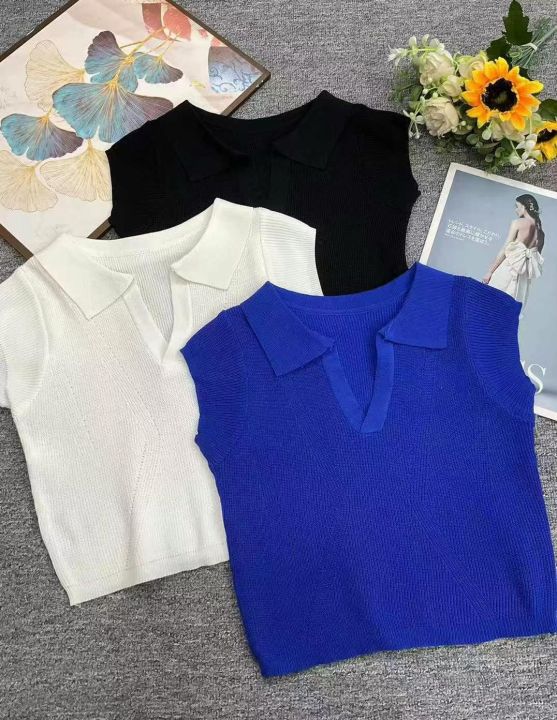捡漏款,夏季新款Polo领双头拉链弹力修身显瘦针织短袖开衫,独立包装,均码...